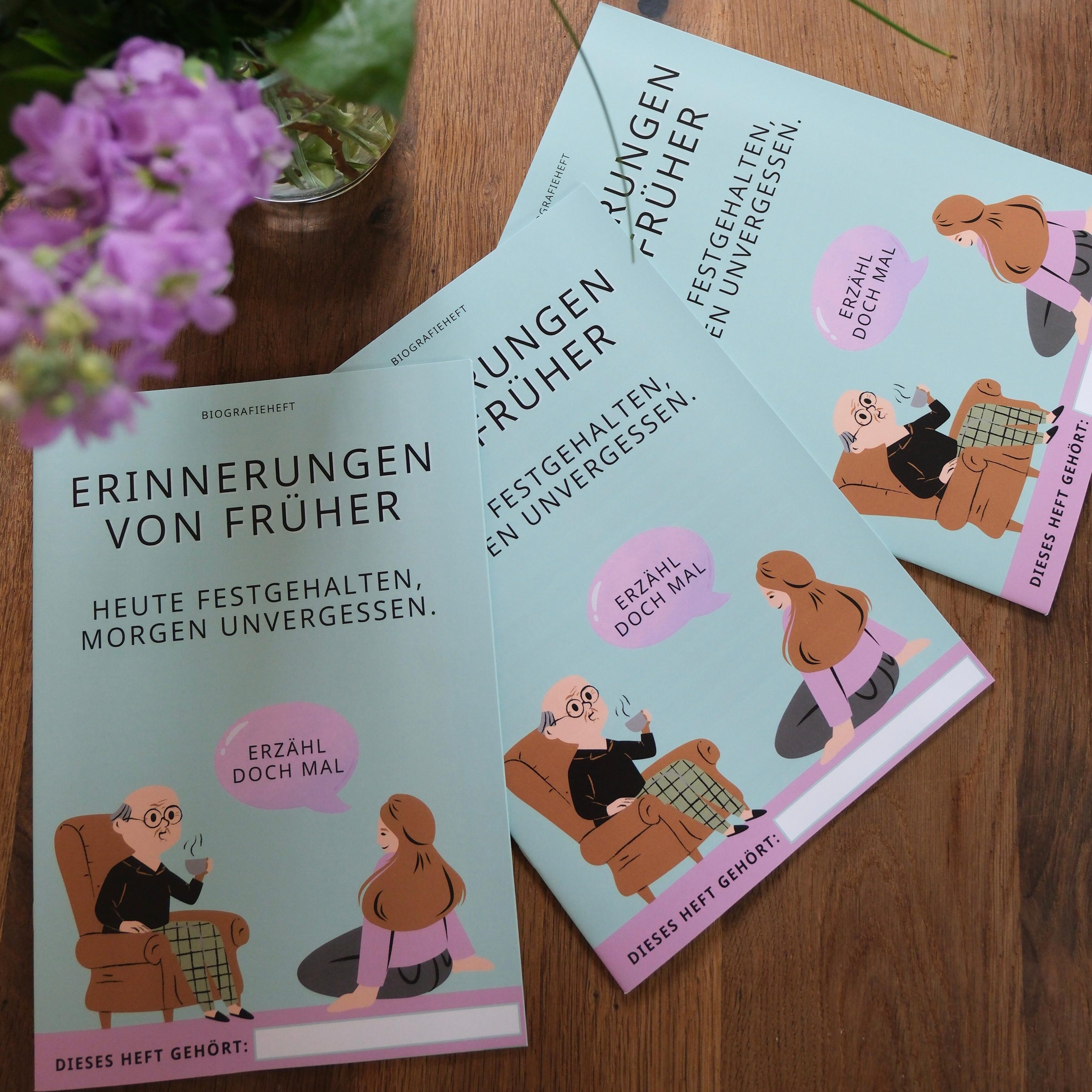 Das Biografieheft „Erinnerungen von früher – heute festgehalten, morgen unvergessen“ unterstützt Menschen dabei, ihre Lebensgeschichte strukturiert, stichpunktartig und leicht verständlich festzuhalten – idealerweise bereits frühzeitig und unabhängig von einer Demenzerkrankung.